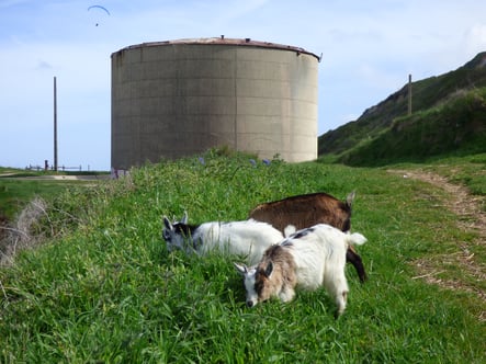 Comme chaque année au printemps, l’ensemble des chèvres est de retour sur les basses falaises d’Octeville-sur-mer.