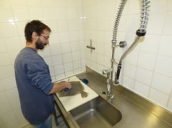 sont raccordés la plupart des bassins. Les poissons sont aussi régulièrement pesés et triés pour s’assurer de l’homogénéité des lots dans chaque bassin.